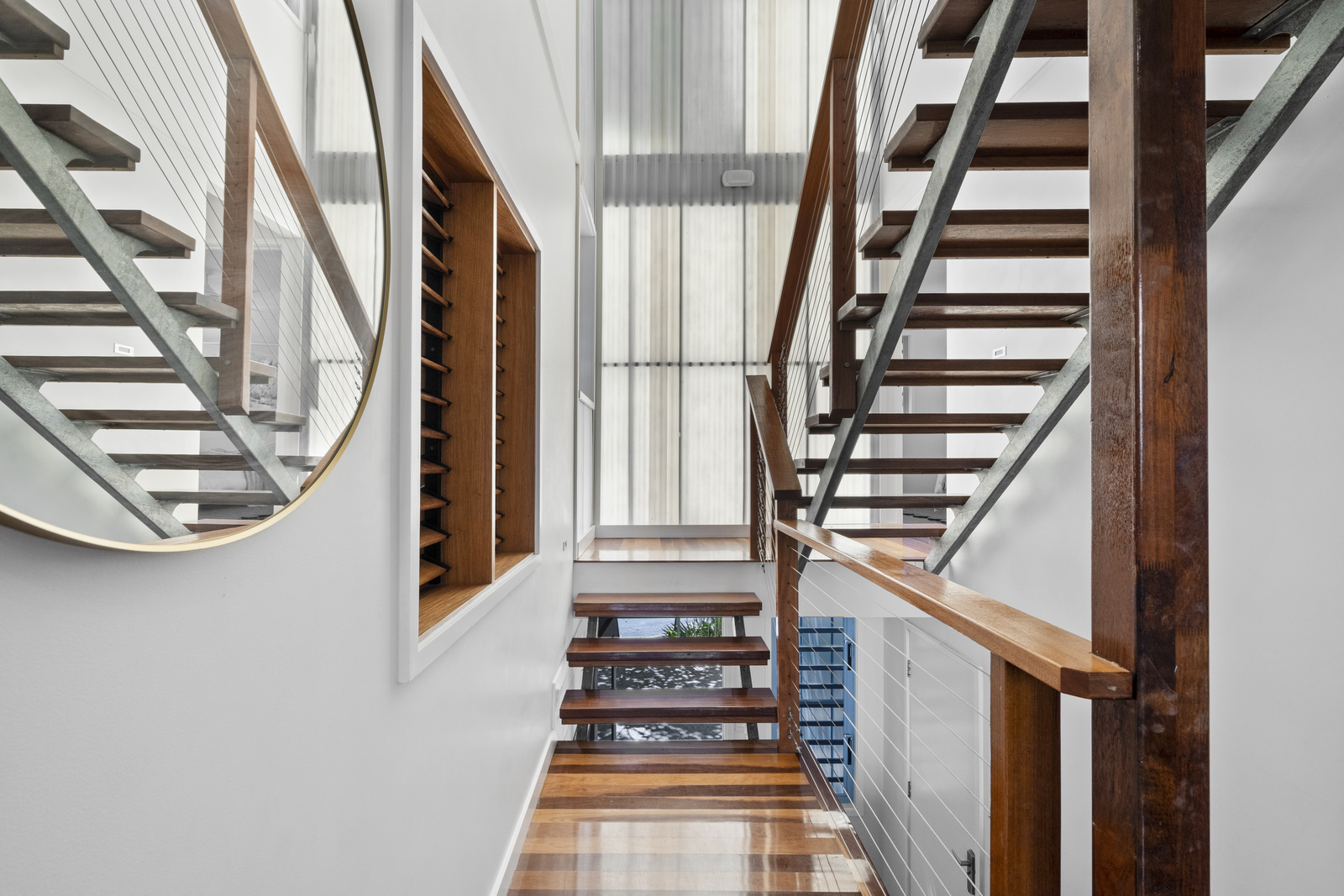 Crowning the home is the rooftop viewing deck, offering ocean glimpses and the perfect spot to soak in Straddie’s famous sunrises, whale migrations and evening colours.