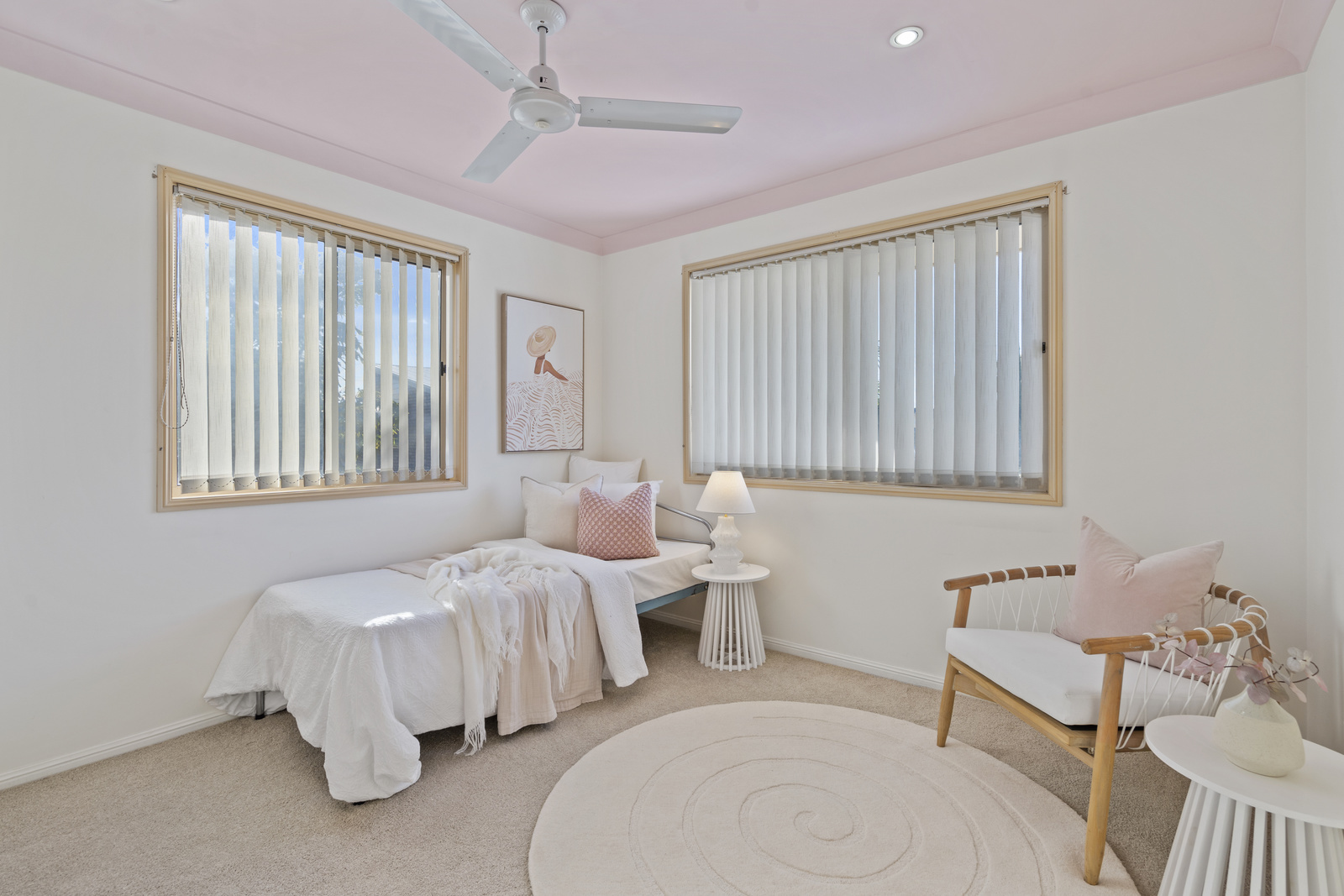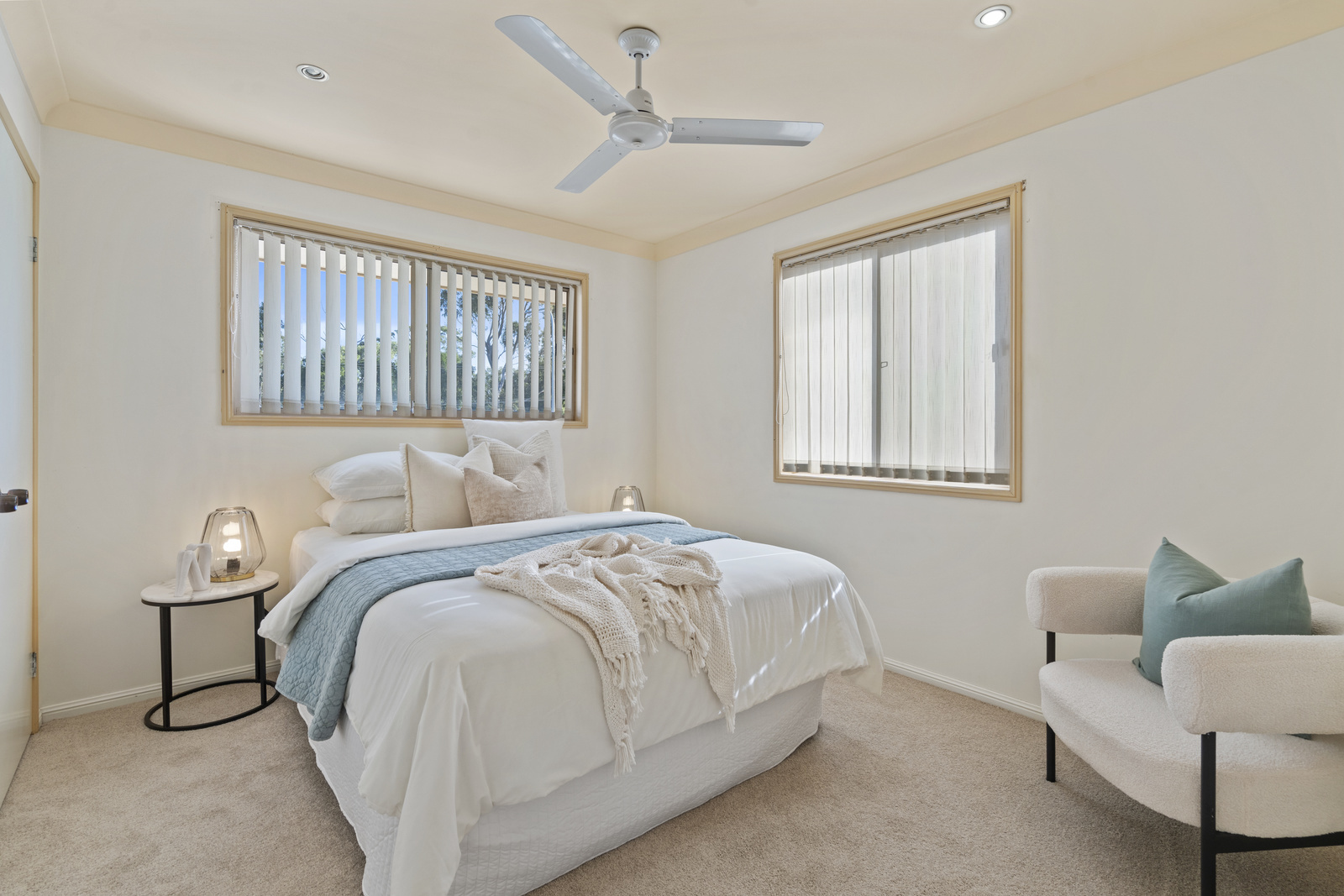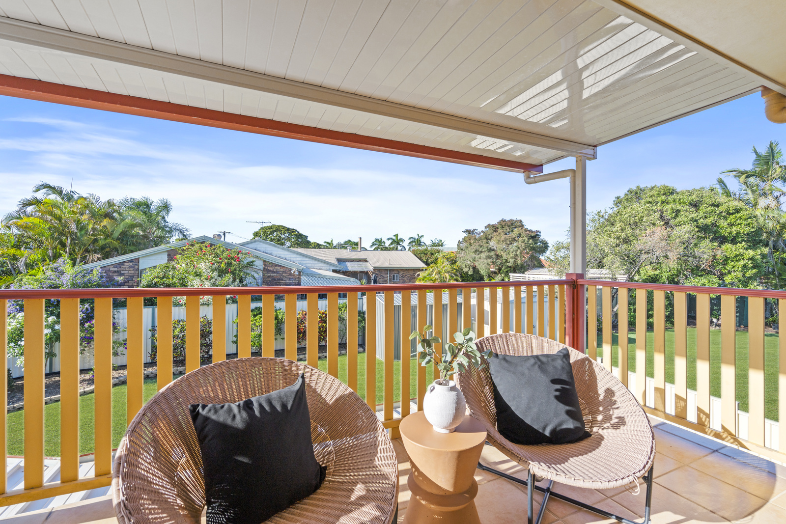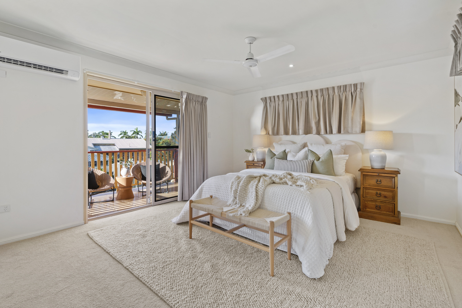Upstairs, the oversized master suite is a true retreat, complete with a walk-in wardrobe, ensuite, private balcony and glimpses of the bay. Three additional bedrooms are well-sized, all featuring built-in wardrobes and ceiling fans, serviced by a main bathroom and separate toilet.