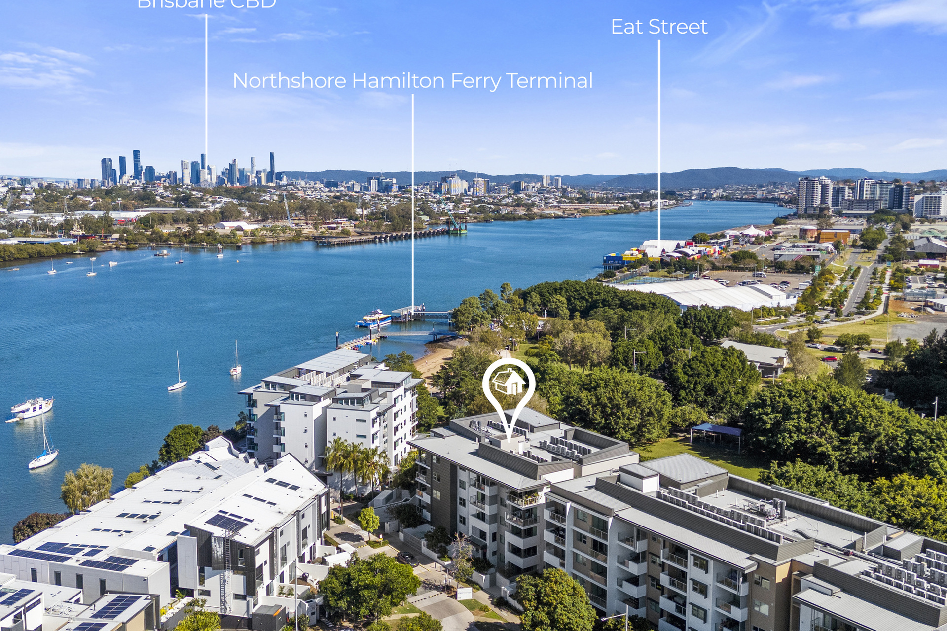 Located on Brisbane River’s edge within Hamilton Reach a boutique precinct surrounded by lush parklands-this property offers peaceful riverside walks along the boardwalk while being just minutes from vibrant local attractions like Northshore Riverside Cafe and Eat Street Markets and the Royal Queensland Golf Club.