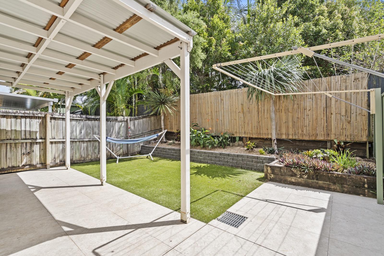 Outside, the home continues to impress with a beautifully tiled undercover patio, ideal for entertaining, along with a low-maintenance astro turf yard and retained garden bed framed by lush greenery-creating a peaceful and private outdoor escape.