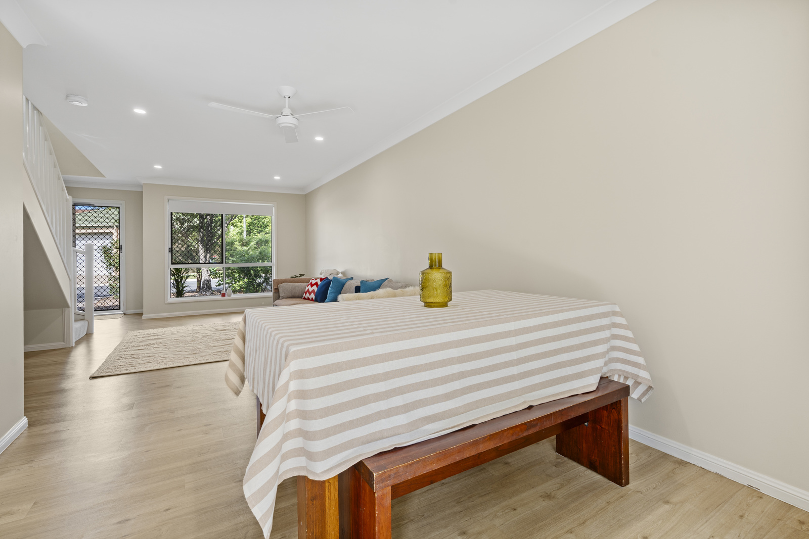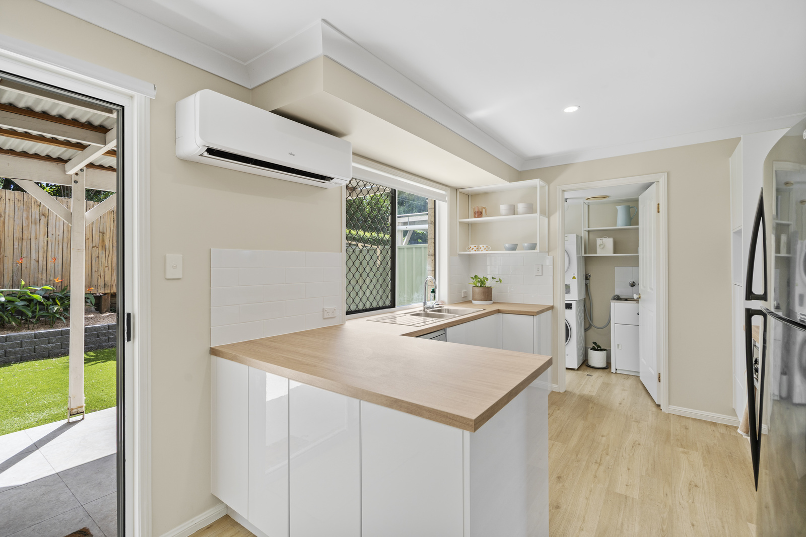The ground floor also offers a dedicated laundry, additional toilet, updated lighting, and ceiling fans, along with air conditioning to keep the living space comfortable year-round.