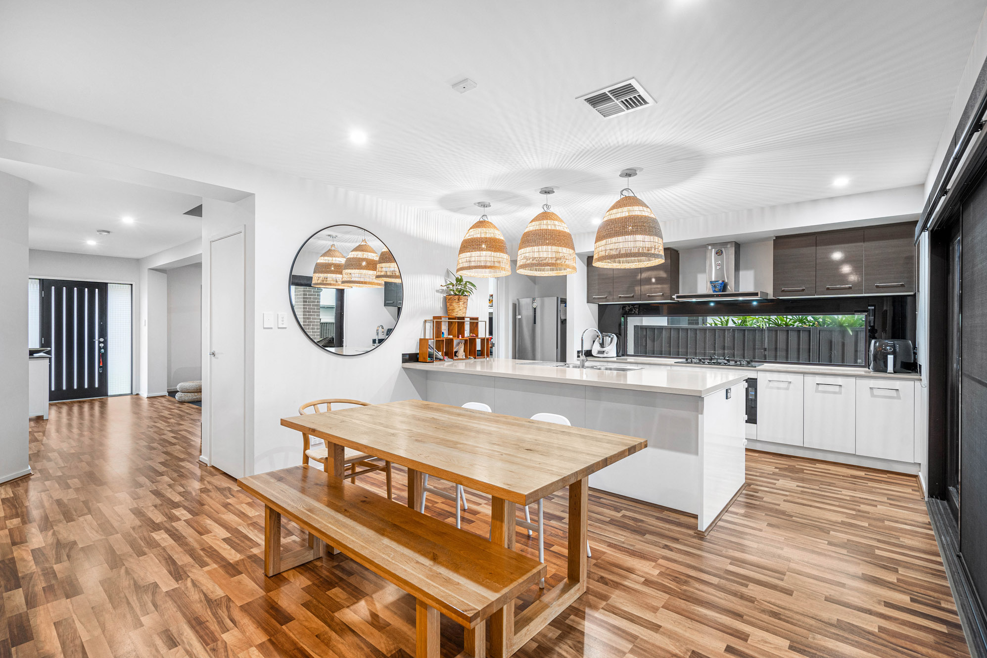 The home features ducted air conditioning throughout, and is connected with AirTouch4 making it possible to turn on even when you're not home (with a valid internet connection).