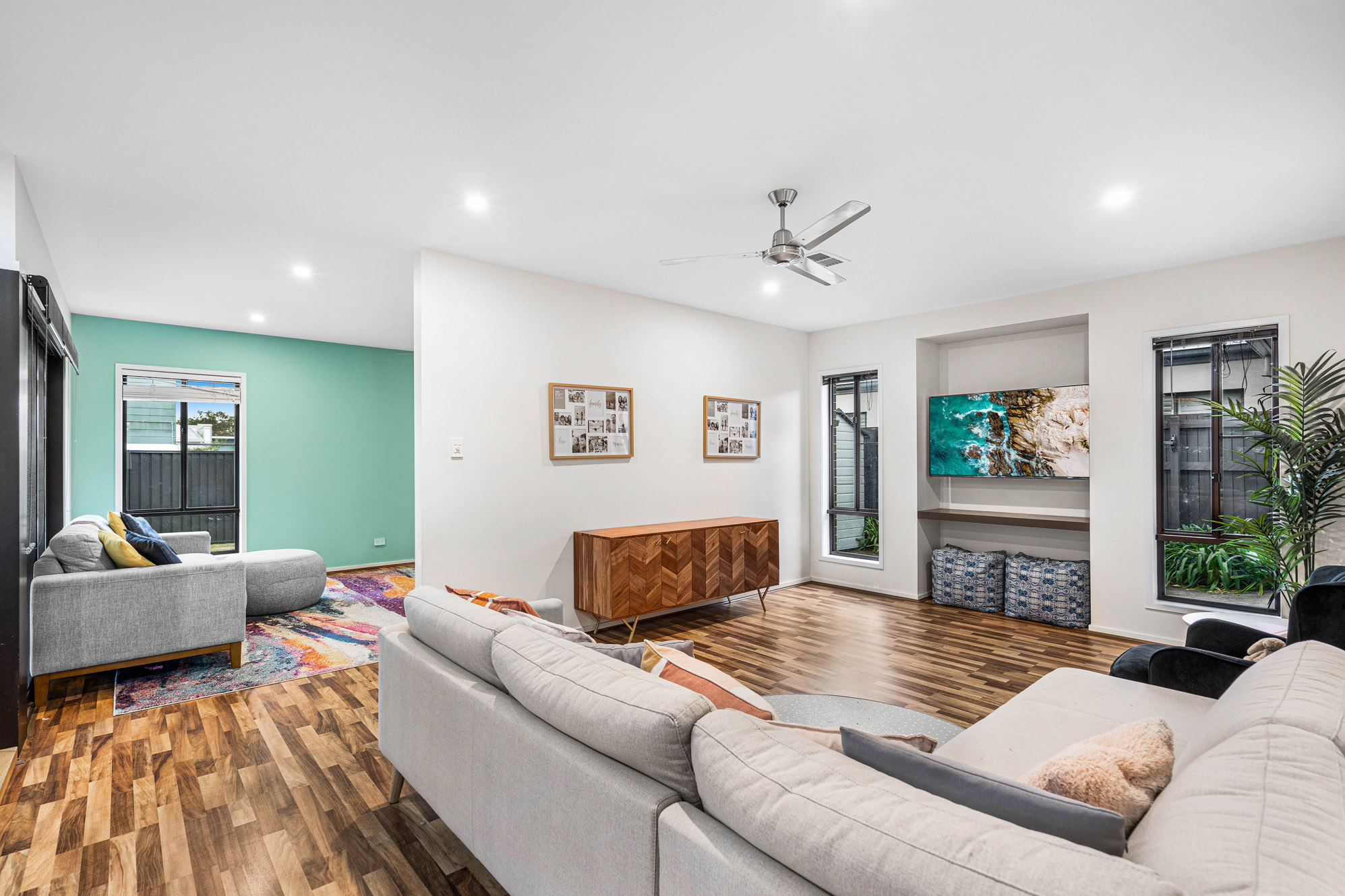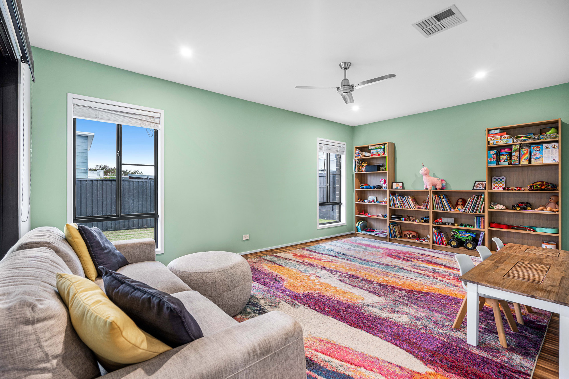 – fully fenced, flat, low maintenance yard with room for a trampoline, cubby house or swing set